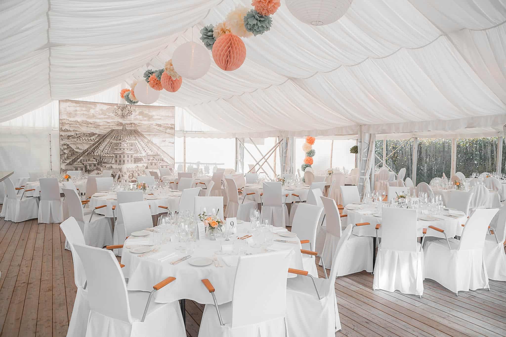 Unikt på Noors Slott är att ni har tillgång till deras fina sommarlounge (tält) i parken för ev vigsel om det regnar eller för festen efter middagen.